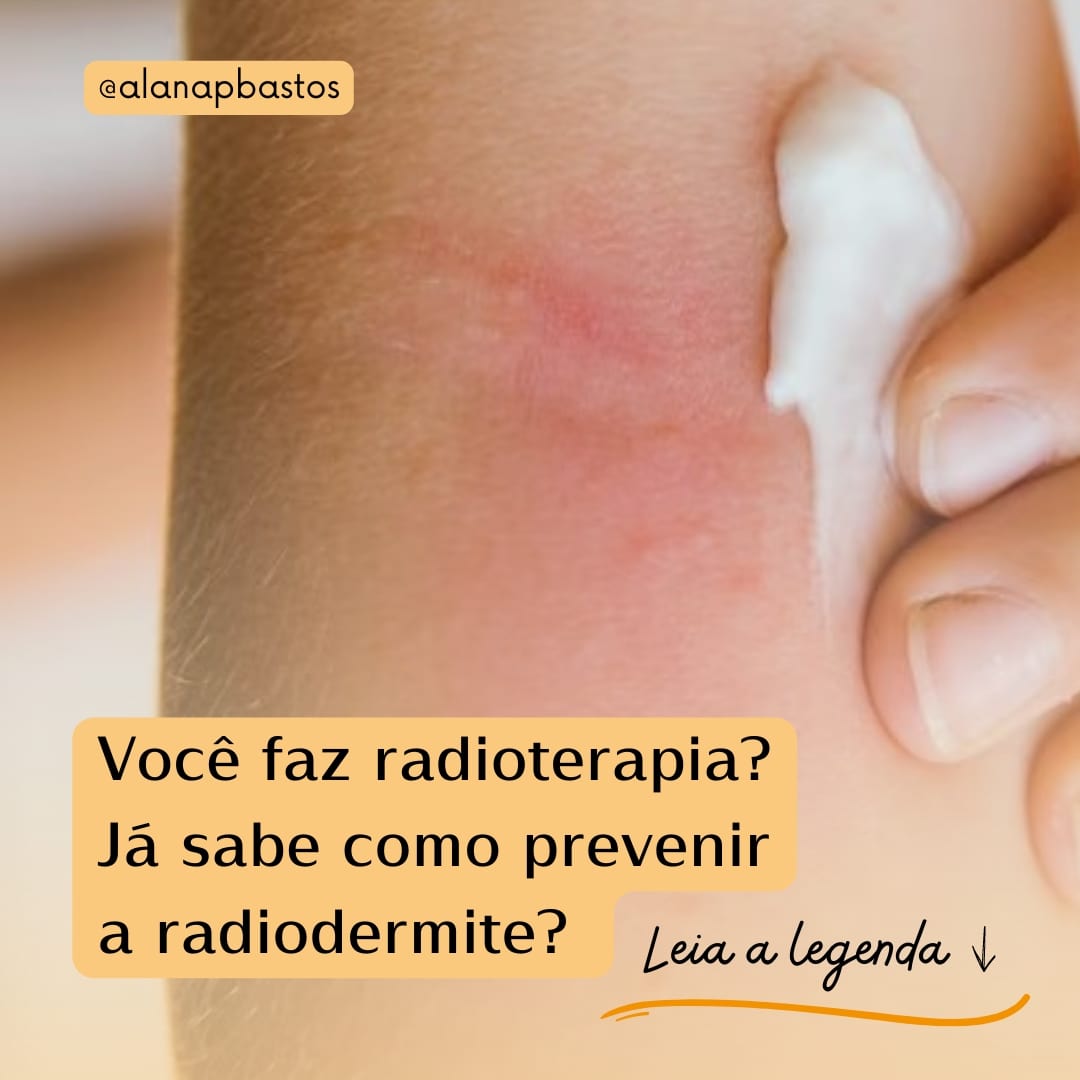 Apesar de parecer uma queimadura, a radiodermite é uma inflamação que pode acontecer durante o período de radioterapia. A pele fica seca e sensível, pode causar dor e evoluir para uma pele bem avermelhada com risco de infecção.